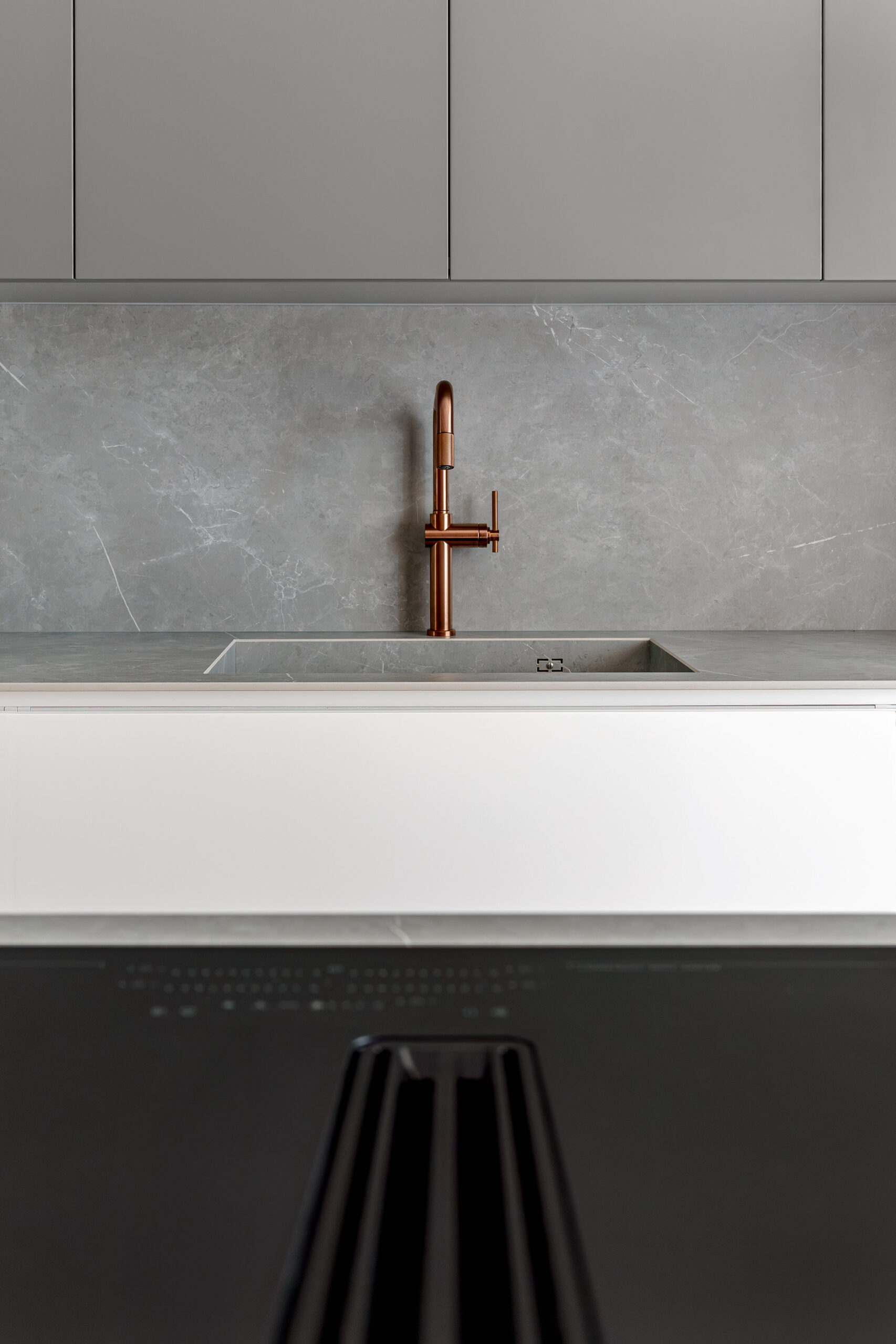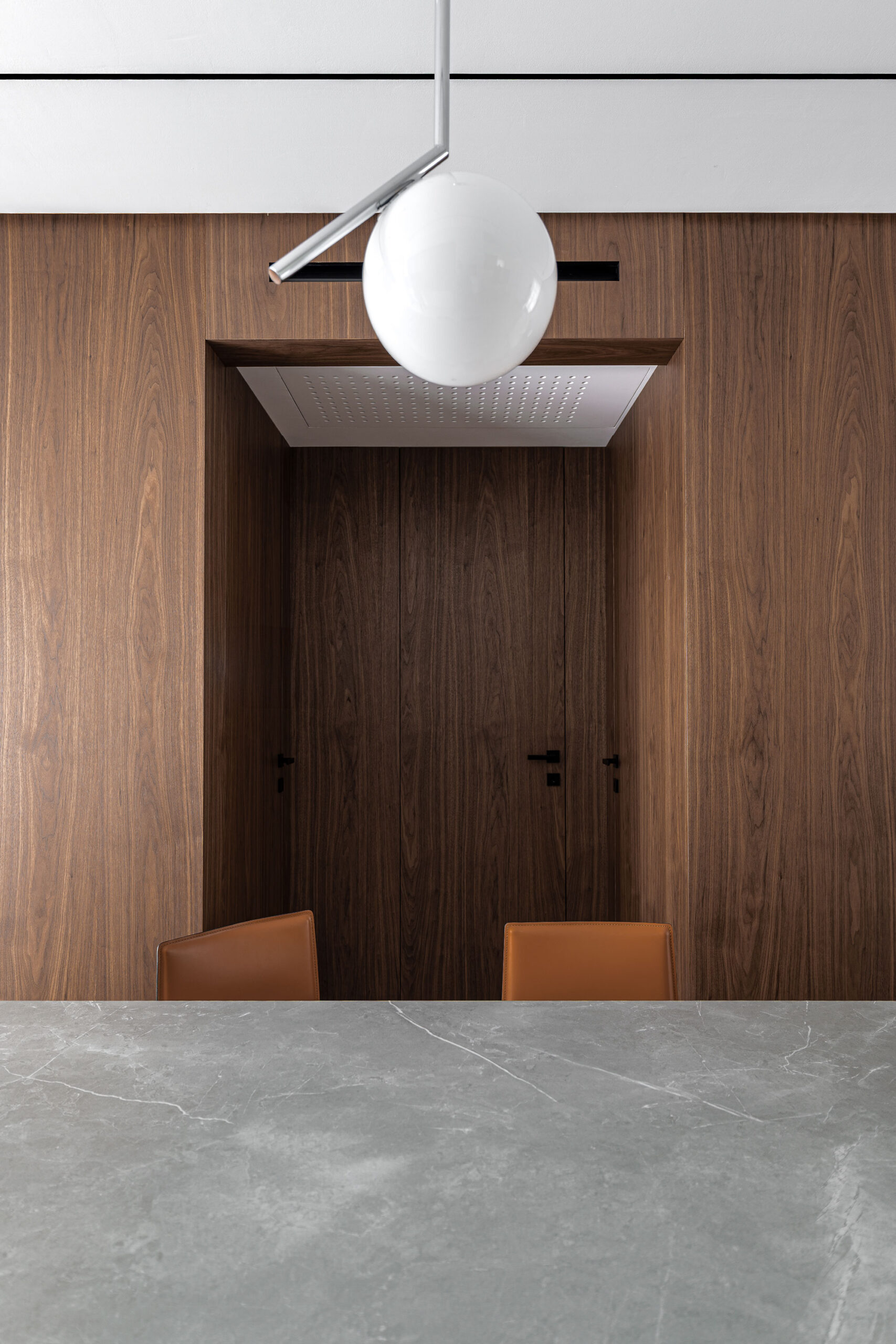 The main element of this project is the wooden boiserie, which serves not only as a key design feature but also plays a functional role in the layout.