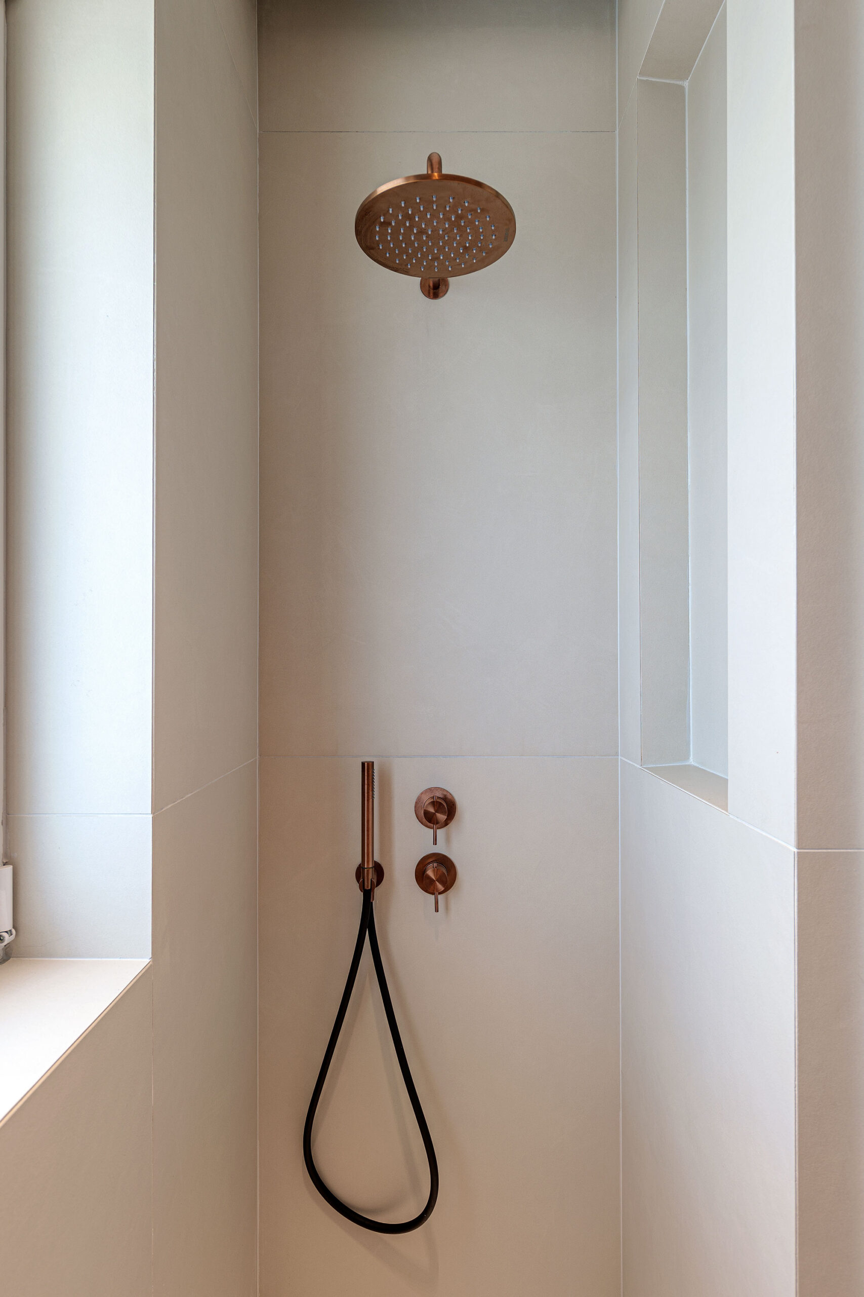 The overall atmosphere is designed to convey a sense of comfort and refinement, with each element carefully thought out to harmonize with others and create a cohesive and pleasant living environment. Attention to detail is evident in every choice, from emphasizing natural materials to the care taken in selecting mirrors to maximize brightness and create depth effects. Contrasts between light and dark tones are balanced to add visual dynamism without compromising the overall harmony of the space.