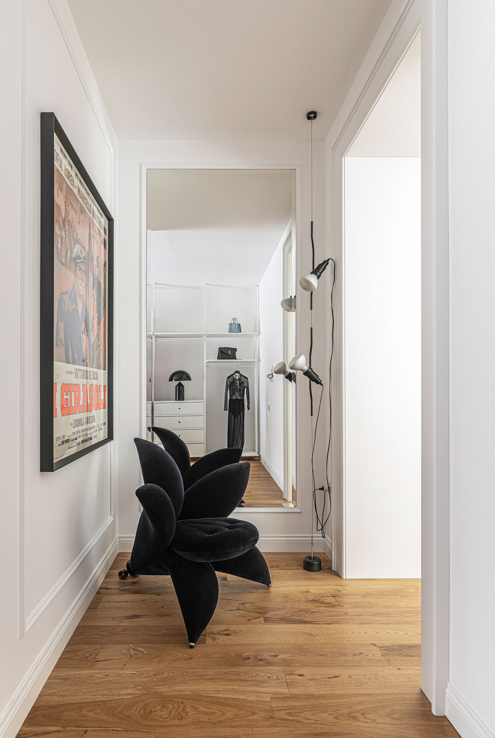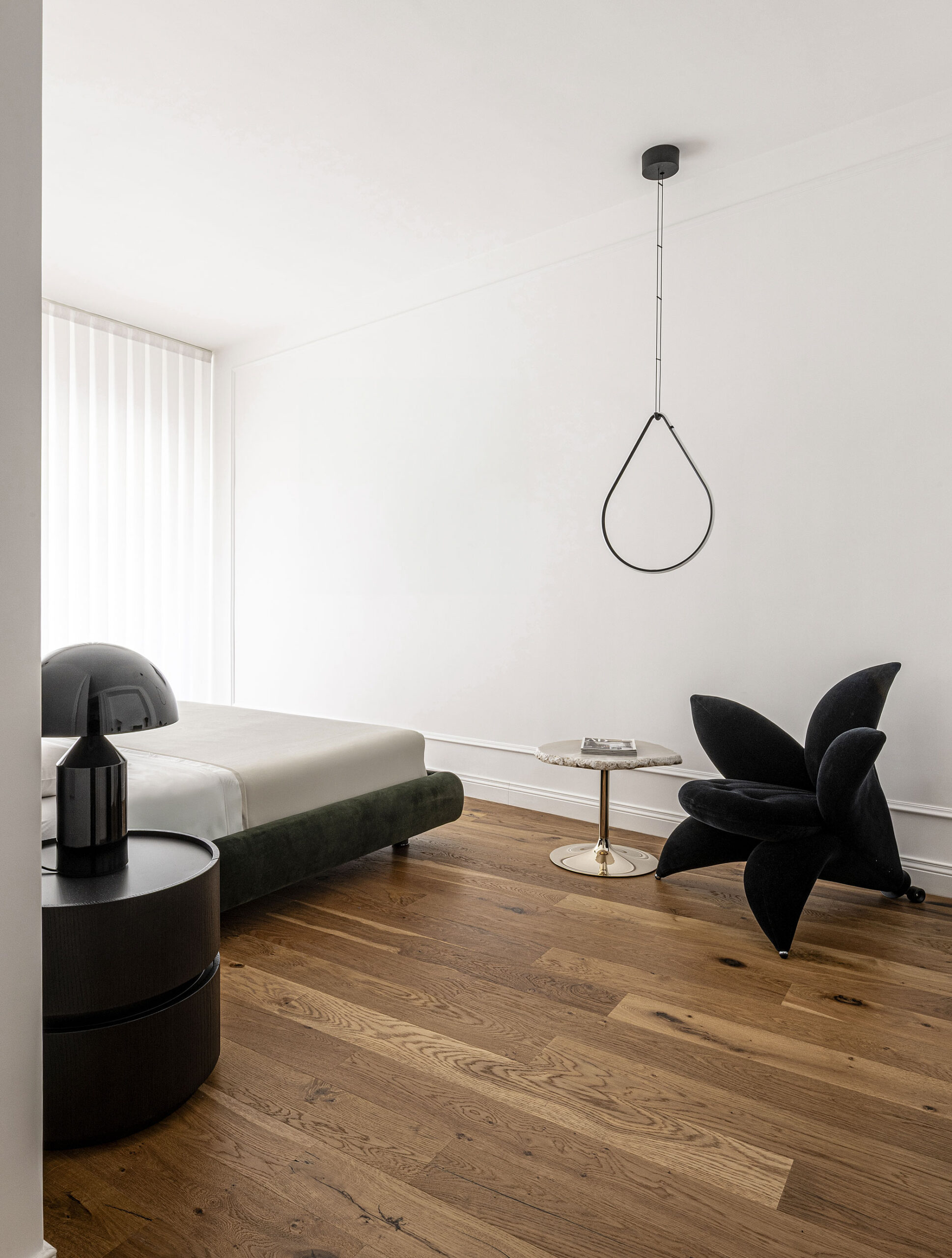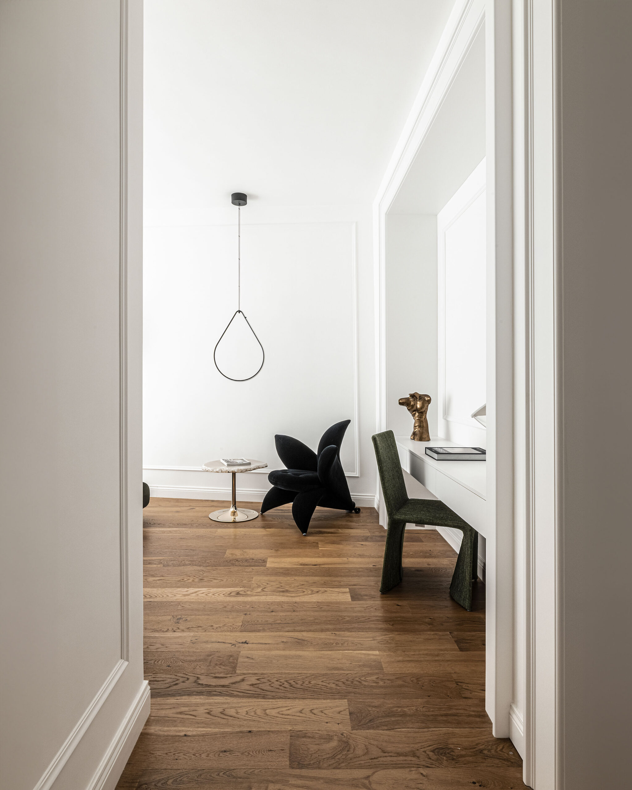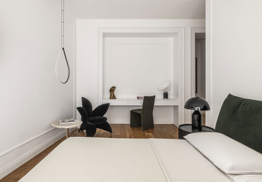 “THE ART SEPTUM” embodies timeless elegance through a mix of refined styles and materials. Every element, from white walls to green fabrics, is chosen to blend harmoniously in an environment where art and design converse fluently. Attention to detail and care in selecting furnishings and lighting make this project an ode to beauty and functionality, destined to surprise and inspire anyone who enters.