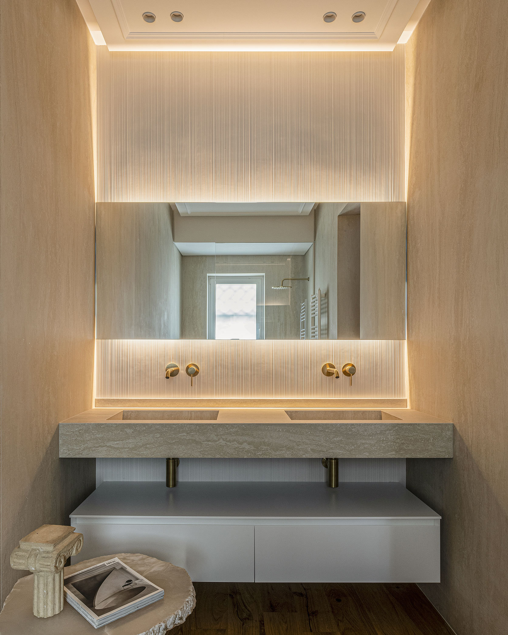 Lighting, both natural and artificial, is designed to enhance every corner of the “THE ART SEPTUM” project. The use of smoked mirrors reflects and amplifies light, while sophisticated wall coverings and frames showcase carefully selected artworks, creating an enveloping and inviting atmosphere. Each space is designed to celebrate the beauty of architecture and its details.